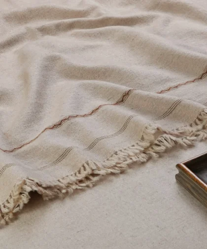 Ecru Wave Stitch Merino Wool Shawl