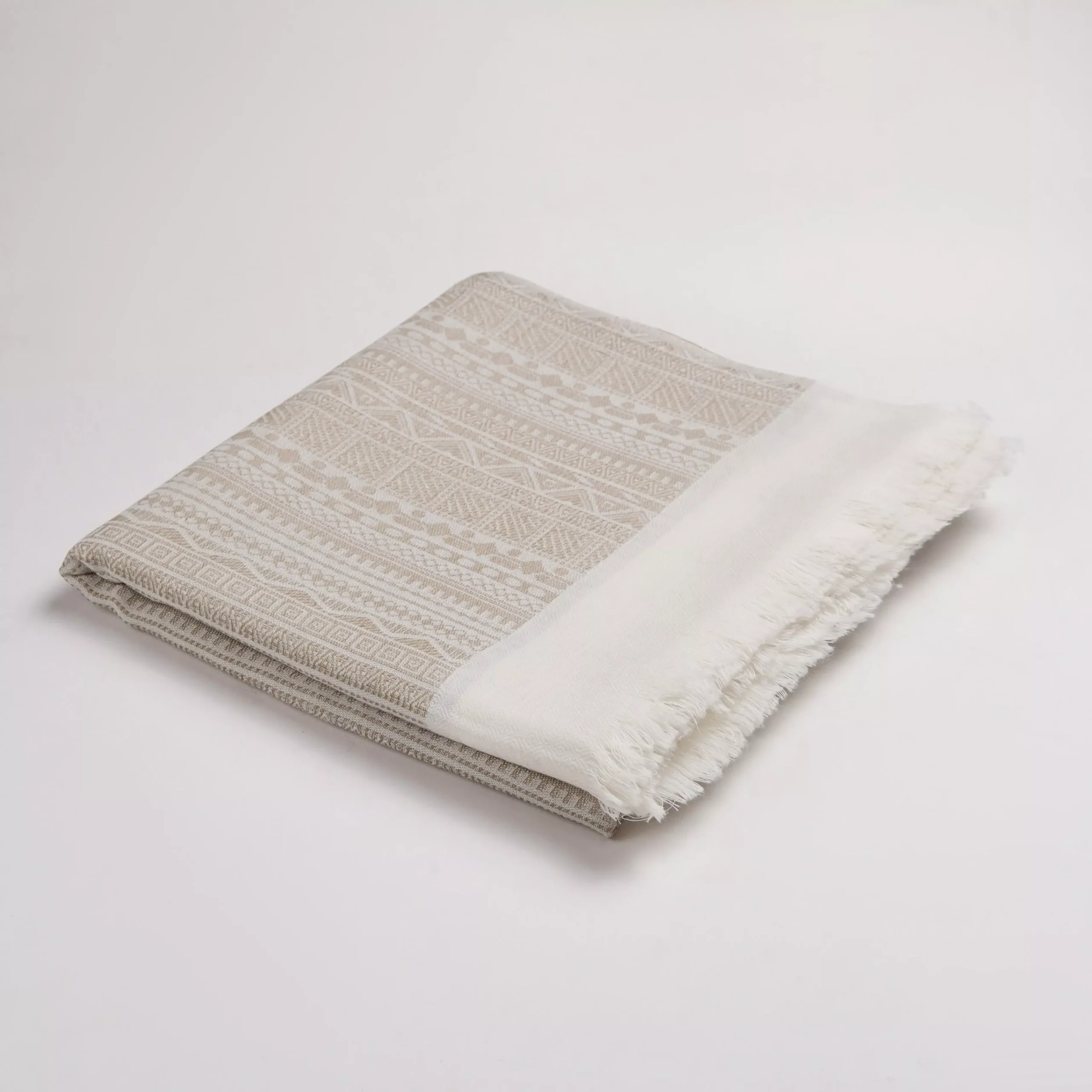 Classic Kani Craft Pashmina Shawl – Traditional Beige Weave