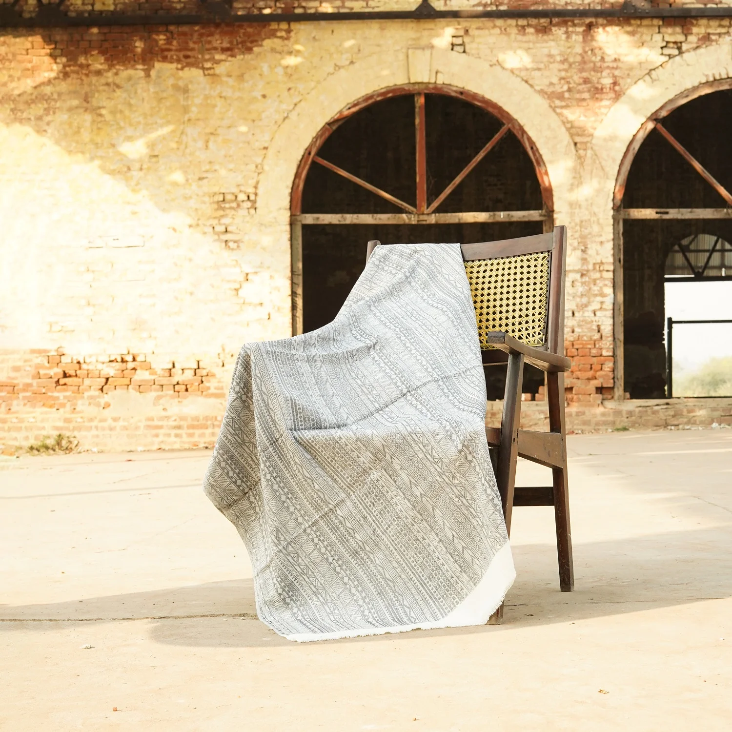 Classic Kani Craft Pashmina Shawl – Traditional Silver Charcoal