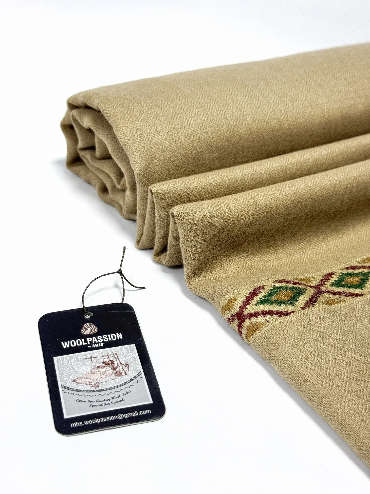 A luxurious ladies’ shawl crafted from soft pashmina in the exquisite Chasme Bul Bul design. Detailed border work adds a touch of elegance and sophistication.