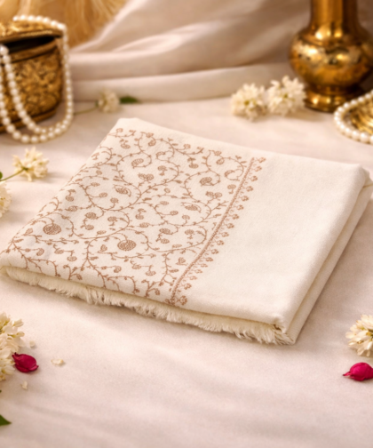 Soft Ecru Royal Jaal Work Shawl